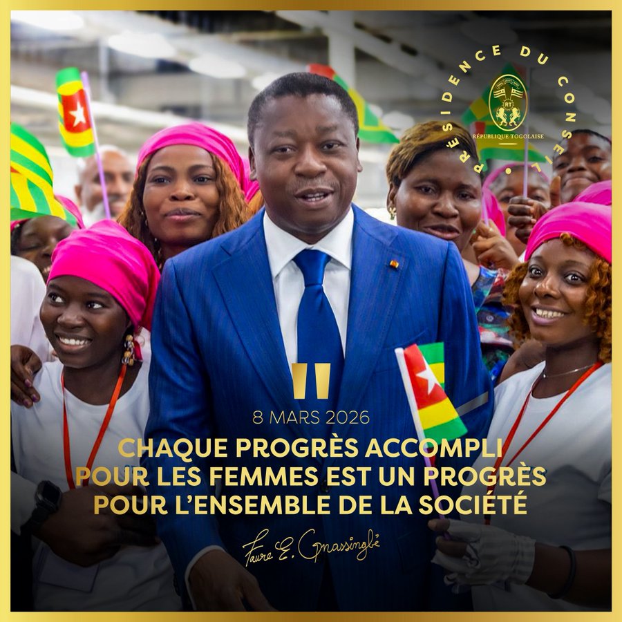 Le chef de l’État a rappelé l’engagement constant de son gouvernement en faveur de l’égalité et de la promotion des droits féminins, affirmant que la marche du Togo vers une société plus juste repose sur la pleine participation des femmes à la vie économique, sociale et communautaire. Il a réitéré la mobilisation de l’exécutif pour améliorer durablement leurs conditions de vie et renforcer les politiques publiques qui leur sont dédiées.