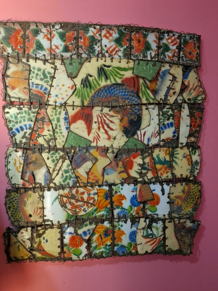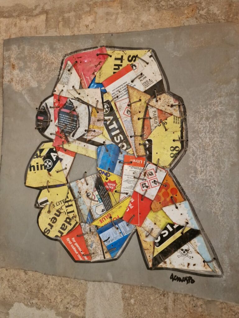 Ici, l’art ne se contente pas d’exister : il opère, il incise, il recoud, il ressuscite. Les bassines émaillées, les tôles meurtries, les bois fatigués deviennent des corps blessés, confiés à un praticien qui ne laisse rien au hasard. Azankpo les examine, les palpe du regard, puis les conduit vers son théâtre opératoire où les fils de fer, tendus comme des sutures, referment les plaies du monde.
