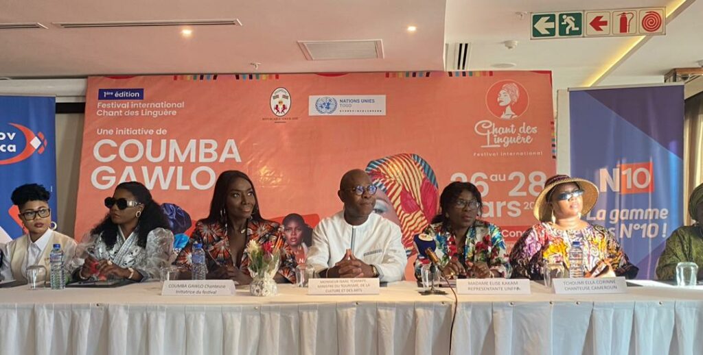 La capitale togolaise sert de cadre, ce jeudi 26 mars 2026, au lancement officiel du Festival International Le Chant des Linguères, une initiative portée par l’artiste sénégalaise Coumba Gawlo, figure emblématique de l’engagement social et ambassadrice de nombreuses institutions internationales. Face à la presse, entourée du ministre togolais de la Culture et du Tourisme, d’artistes venus de plusieurs pays africains et d’un large éventail de personnalités publiques, elle a dévoilé les contours d’un événement qui ambitionne de faire de la musique un levier de transformation sociale.