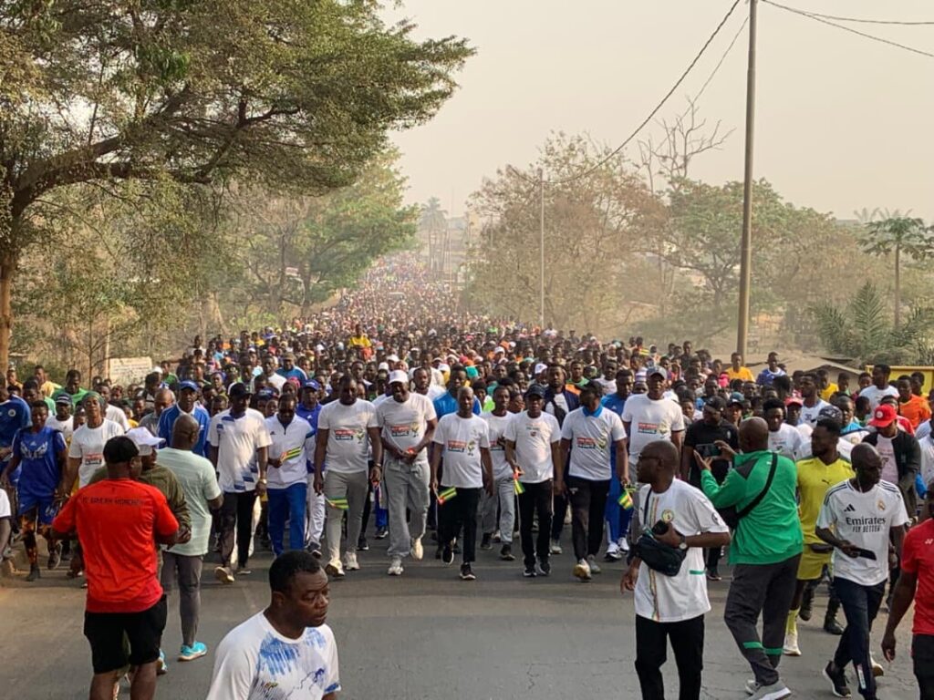 Initiative gouvernementale dédiée à la promotion de l’activité physique et au bien‑être des populations, cette édition a rassemblé un public particulièrement diversifié : enfants, jeunes, femmes, personnes âgées et personnes en situation de handicap. Dans une ambiance conviviale rythmée par chants, danses et percussions, les participants ont parcouru les artères de la ville aux côtés du ministre et des autorités locales, avant de rejoindre le stade municipal pour une séance d’exercices dirigée par un professeur de sport.
