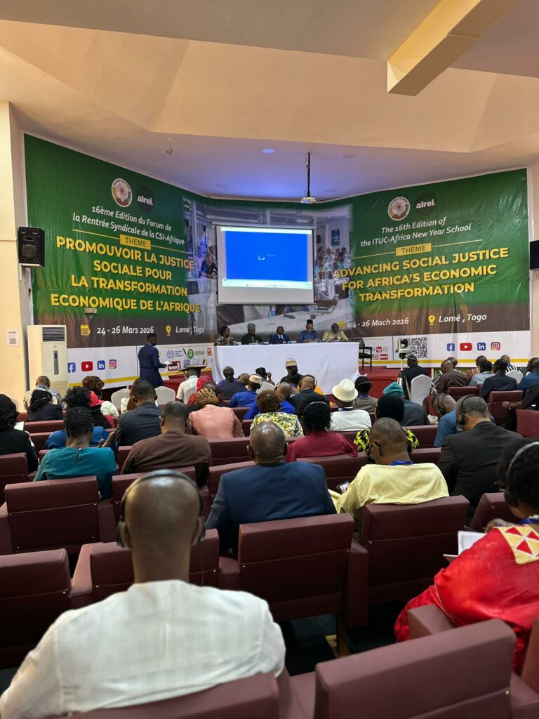 La capitale togolaise accueille cette semaine la 16ᵉ édition du Forum de la Rentrée Syndicale (New Year School – NYS) de la CSI‑Afrique, un rendez‑vous devenu incontournable pour les organisations de travailleurs du continent. Sous le thème ambitieux « Emplois, justice climatique et commerce au service de la transformation de l’Afrique », le forum ouvert ce mardi 24 mars par la Présidente de la CSI-Afrique, Marta Molena, en présence du Secrétaire général du ministère du travail du Togo, Atissim Assih, de celui de l’ITUC-Africa, Jöel Odige Akator, ainsi que du SG de l’UNSIT, Sénouvo Vissikou, réunit syndicats, organisations de la société civile, experts et partenaires internationaux pour réfléchir aux mutations économiques et sociales qui redessinent l’avenir du continent.