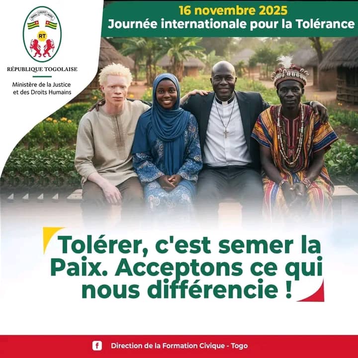 La Journée internationale pour la Tolérance est un appel à l’action citoyenne, pour que chaque Togolais devienne acteur d’un vivre-ensemble apaisé et durable. Fin